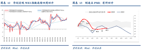 最后,往前看,汇率既有内部因素又有外部因素。内部来看,华创宏观周度WEI指数显示经济已在磨底中,二季度经济回踩基本结束,PMI已经触底(7月制造业PMI连续第二个月回升至49.3%);外部来看,美元此轮加息周期或已结束(详见《停止加息的三个信号均已显现》),美元已在强弩之末(年度视角)。综合内外而言,汇率中期具备内生性稳定的强基础。