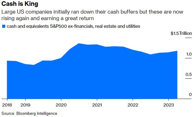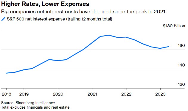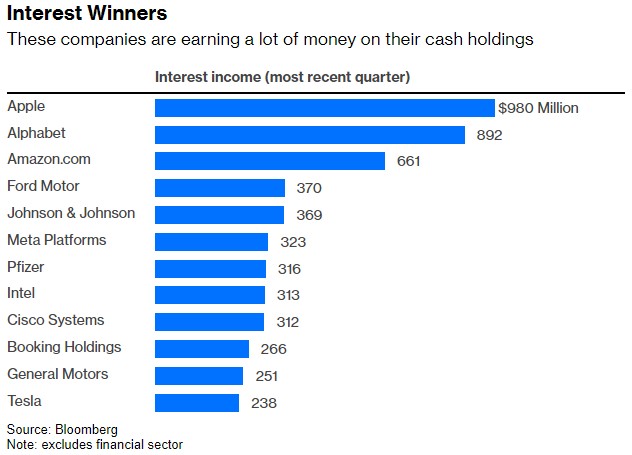 直到最近,市场还认为利率上升对企业不利。事实上,许多大公司正受益于几十年来最快的加息周期,至少从纯粹的财务角度来看是这样。