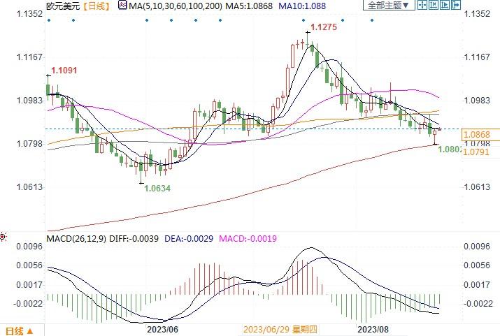 欧元兑美元日线图北京时间8月24日12:32,欧元兑美元报 1.0866/67