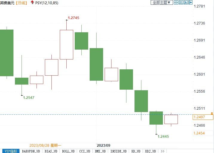 英镑兑美元日线图北京时间9月8日13:41,英镑兑美元报1.2497/98