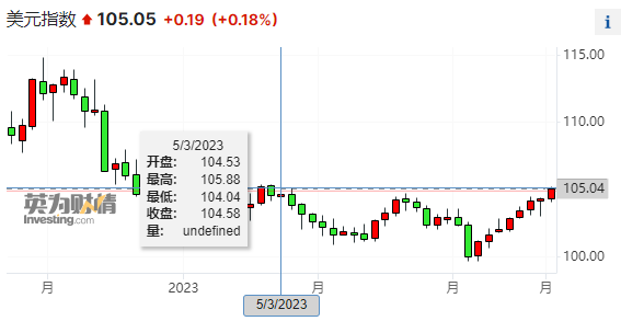 市场分析人士认为,美元指数上涨是当天金价下跌的主要原因。截至纽约汇市尾市,的美元指数当天上涨0.19%,报105.05,刷新今年3月以来的高位。