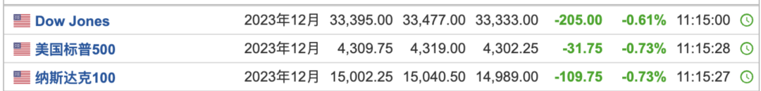 与此同时,美股指期货却一路下行。截至发稿,道指期货跌0.61%,标普500指数期货和纳斯达克100指数期货均跌超0.7%。