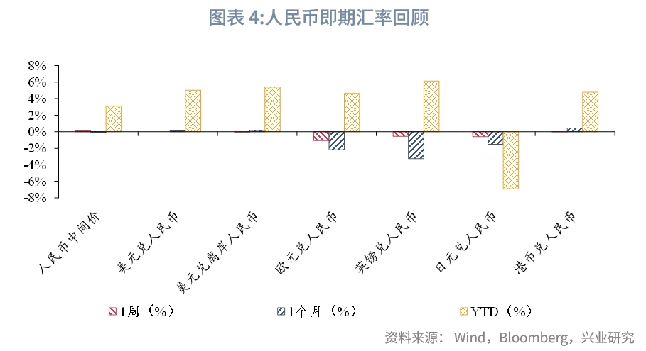 人民币汇率方面,中美经济领域工作组成立及央行强维稳信号对人民币汇率起到支撑作用,美元兑人民币维持高位震荡。人民币相对欧、日、英、港等主要货币小幅贬值。境内外掉期和价差震荡;境内外远期震荡、价差走阔。