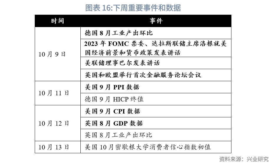 G7汇率方面,美国9月ADP新增就业人数腰斩,打断美元指数周线升势,但非农新增、JOLTS职位空缺、首申失业、PMI等数据保持强势,美元指数跌幅受限。欧元区9月PMI终值意外好于初值,给予欧元汇率一定支撑。10月3日在美债收益率上行的带动下美元兑日元突破150关口后回落,市场猜测日本央行或已出手干预,同时前日本央行理事释放鹰派信号(指出本月或考虑微调YCC和前瞻指引)。