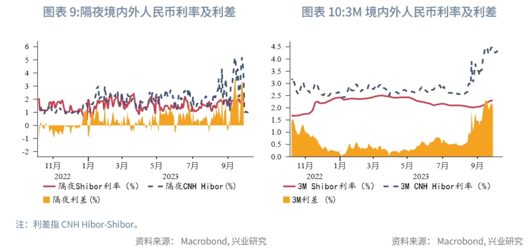 行情研判方面,我们维持在月报中的判断,即基准预测为逆周期工具与刚性结汇盘接续,使得美元兑人民币区间震荡至春节前。近期美元指数回调减轻了人民币汇率的压力,国庆假期间离岸美元兑人民币也维持了横盘。美元兑日元触及150大概率触发了日元汇率干预,这也有望与国内逆周期调节形成合力。