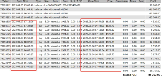 然而,Doo Prime德璞资本却以客户A违规为由,直接扣除他的利润。经查发现,A的持仓最短的订单只有50分钟,而且还有7号开的订单。这显然是Doo Prime德璞资本与客户对赌并且输不起,直接硬吃客户利润的行为。