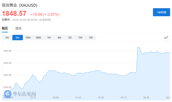 现货黄金日内涨超0.8%,现报1848.57美元/盎司。