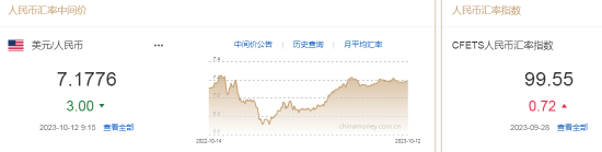 10月12日,人民币中间价报7.1776,上调3点,上一交易日中间价报7.1779。