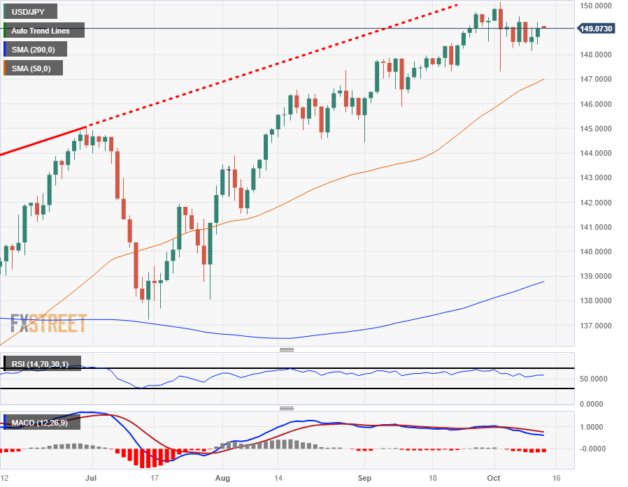 FXStreet分析师Joshua Gibson表示,美元/日元较本周低位上涨0.6%,但盘中价格走势发现自己沿着200小时简单移动平均线(SMA)徘徊,而短期买盘者可以击败的数字将是上周的价格走势,峰值略低于149.60。