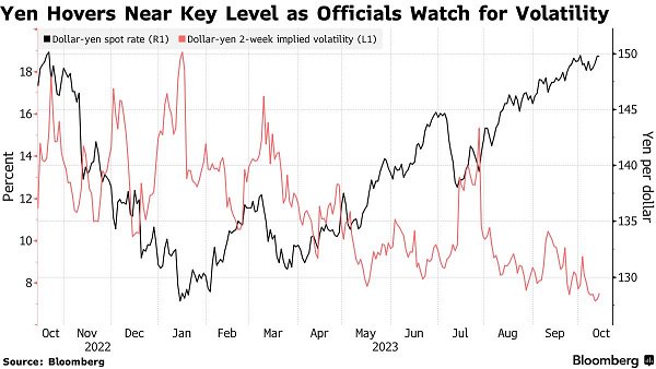 尽管美元/日元汇率正接近一个重要水平,但两周隐含波动率(衡量预期波动的指标)仍接近2022年3月以来的最低水平。