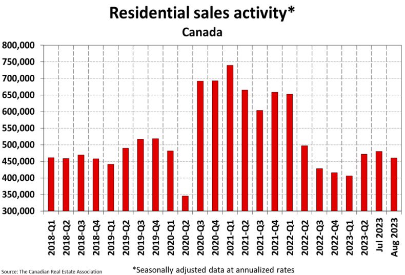 与 2022 年同期相比,今年迄今为止住宅销售额下降了 15%,至 579 亿加元。单位销量下降 11.5%,至 59,570 套,平均价格下降 4%,至 972,049 加元。