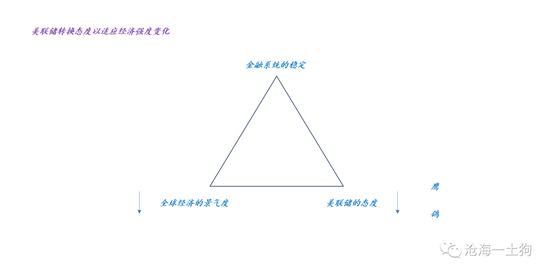 如上图所示,为了保持金融系统的相对稳定,美联储需要不断地变化自身的态度,以适应全球经济景气度的发展(ps:尤其是美国本土+地缘政治):