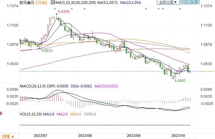 周四(10月12日),由于美国通胀数据大幅超过预期,美元形成自3月份15日以来 单日最大涨幅,而欧元/美元则下跌0.85%,至1.0527美元。美国劳工部周四公布的报告显示,9月消费者价格指数(CPI)环比上升0.4%,其中住房成本上升0.6%,占增幅的一半以上。虽然许多人对租金上涨不以为然,但也有人由此得出结论,美联储将通胀率降至2%目标的任务还没有完成。这提升了美联储在一段时间内维持高利率的前景。甚至有机构分析认为,美联储仍有可能会再加息一次,最有可能是在12月。近期的通胀数据(PPI、CPI)尽管同比来说都略呈下降,但并不能改变美联储坚持维持高利率一段时期的想法。相反,诸如欧元区和英国这些主要经济体,在高利率成本的拖累下,经济局面显然已发生停滞并有可能陷入衰退边缘的风险,因此上述区域和国家的利率调升周期极有可能走到了尽头。如此一来,美元及美债收益率相对来说就仍保持着息差方面的优势,再加上近期地缘政治冲突局势的避险要求,美元仍会是资金的主要流向之所。日线图上,欧元一根大阴柱令积攒了一周多的反弹势能似乎戛然而止,走势形态有所转变,打后若不能回升1.06之上,则小心欧元继续下滑的风险。