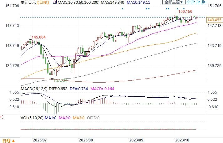 美元兑日元日线图北京时间10月16日14:23 美元兑日元 报 149.455/