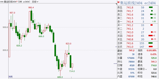 海通期货研究团队表示,本周EC盘面涨势难以为继的主要原因在于弱现实的确定性和强预期的不确定性。上周的涨势主要受到基本面的主动运力供给收紧和短期预期面的船公司宣涨的推动,现货运价由于国庆假期原因暂停公布,因此交易逻辑更偏向预期端。但是节后随着一系列偏弱的现货运价公布,同时市场广泛讨论此轮涨价可能难以落地,引导市场更加偏向交易疲弱的现货市场。