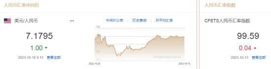 10月18日,人民币中间价报7.1795,上调1点,上一交易日中间价报7.1796。