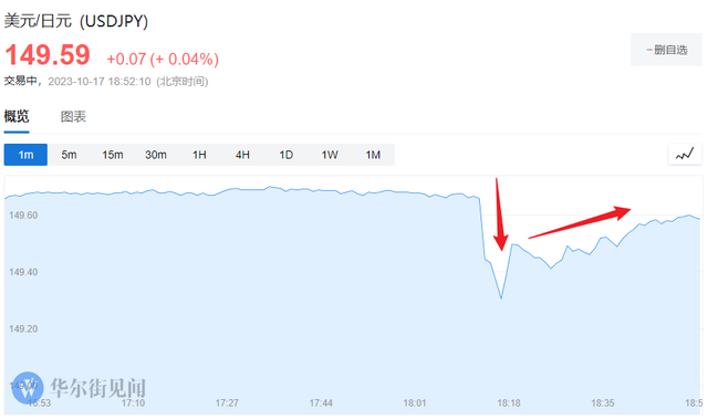 消息发布后,日元短线拉升,美元兑日元一度下挫约30点,随后有所回升,现报149.59,逼近150关口。