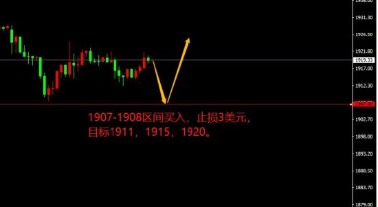 1907-1908区间买入,止损3美元,目标1911,1915,1920。
