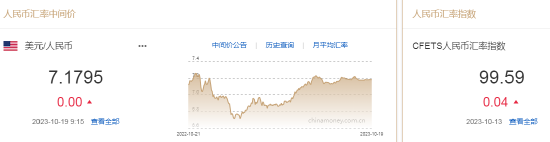 10月19日,人民币中间价报7.1795,上一交易日中间价报7.1795。