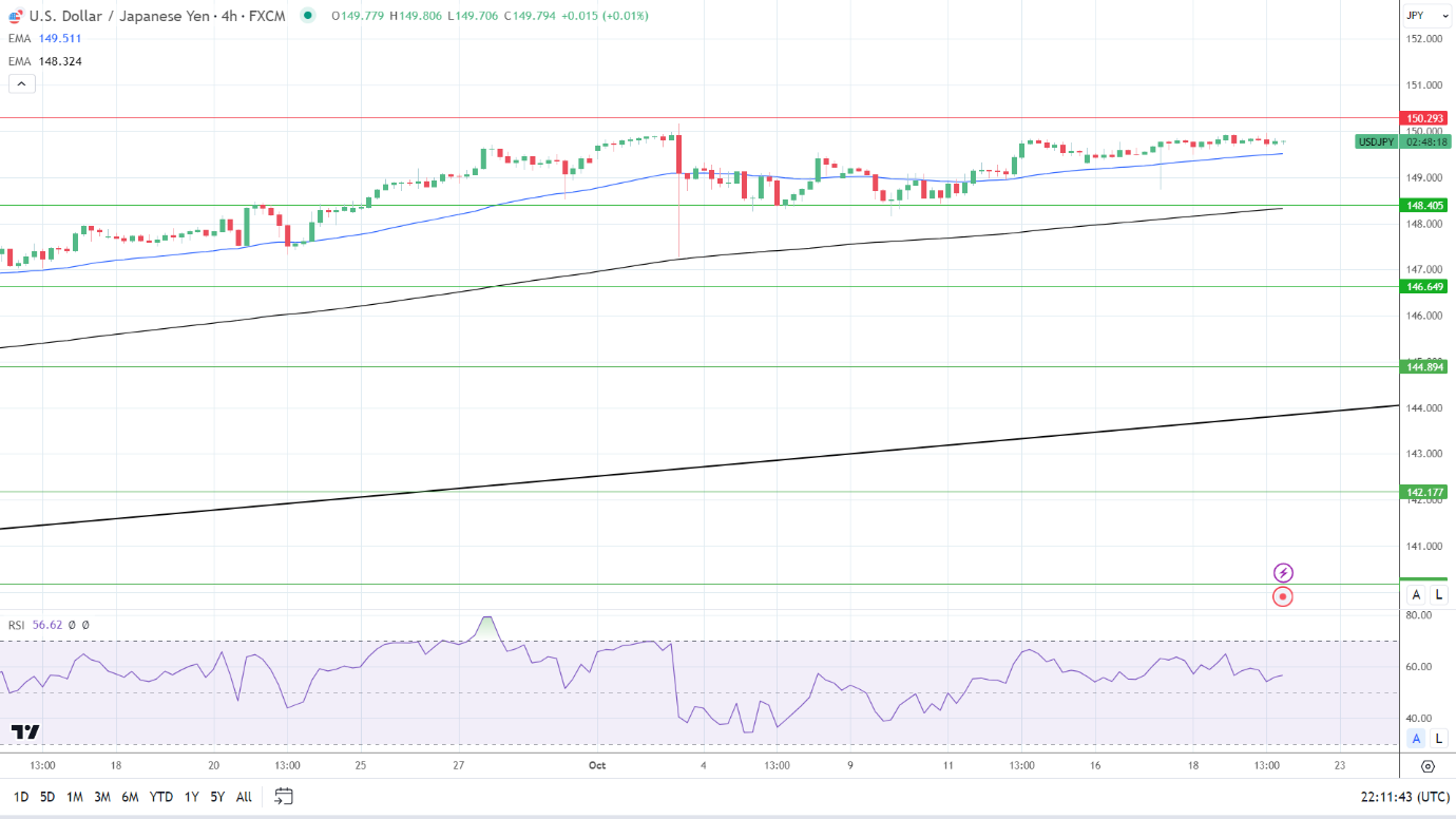 14-4小时RSI的56.62表明,美元/日元在进入超买区域之前突破150.293阻力位。