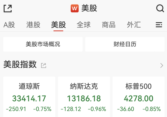 美股方面,三大股指收盘集体下跌,道指跌0.75%,报33414.17点;纳指跌0.96%,报13186.18点;标普500指数跌0.85%,报4278.00点。