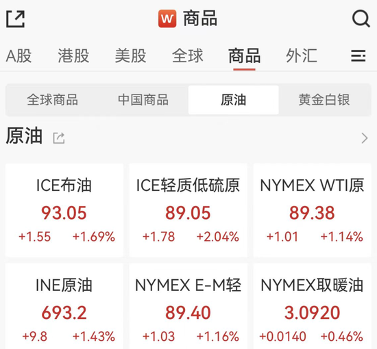 国际油价全线上涨,美油12月合约涨2.17%,报89.16美元/桶。布油12月合约涨1.92%,报93.26美元/桶。