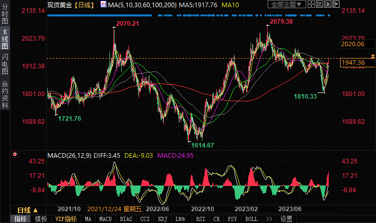 汇通财经APP讯——周四(10月19日)亚市尾盘,现货黄金基本持稳,目前金价交投在1947美元/盎司附近。本文对日内黄金技术前景进行分析。