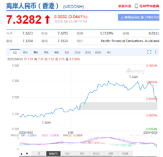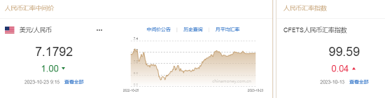 10月23日,人民币中间价报7.1792,上调1点,上一交易日中间价报7.1793。
