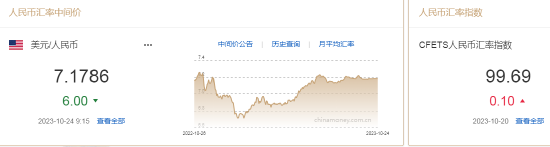 10月24日,人民币中间价报7.1786,上调6点,上一交易日中间价报7.1792。