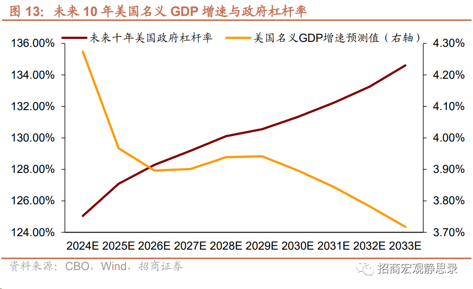 这轮加息中高通胀、高利率与高政府杠杆率的组合史无前例。往后看,即便美国名义GDP增速能够一直保持在5%附近,如此大的债务支出成本也绝非美国政府所愿。进而,加税与降息是降低债务成本的唯二之选,显然加税阻力远大于降息,因此,明年美国大选前美联储可能会有较为明确的政策转向。