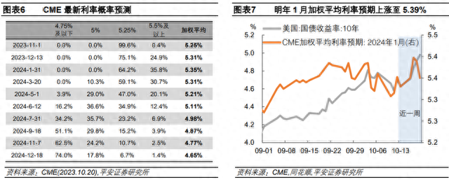 - 利率预期方面,目前不能排除今年12月或明年1月美联储再加息的可能性,且高利率持续的时间仍有争议,利率预期仍有上修空间;