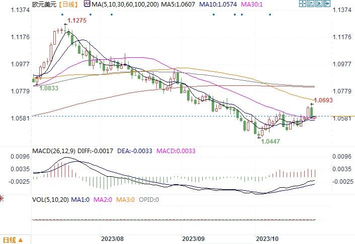 周二(10月24日),美元兑一篮子货币周二上涨,因一批新的经济数据凸显美国经济相对于英国和欧盟更为强劲。欧元兑美元则一反周一升势,尾盘下跌0.8%,报1.0588美元。标普全球周二称,美国10月企业产出略有上升,制造业因新订单增加而摆脱了五个月的萎缩,服务业活动在通胀压力缓解的迹象下小幅加速。这是美国经济经受住利率飙升考验的最新迹象。而周二早些时候公布的一项调查显示,10月欧元区商业活动出人意料地恶化,区内需求普遍低迷,暗示欧元区可能陷入衰退。德国的数据尤其黯淡。PMI调查显示,服务业也步制造业后尘进入萎缩区域。欧美以及英国央行纷纷将于本周和下周召开10月份的利率会议,目前市场上预计三家央行都会按兵不动。但对照各自的经济发展数据,明显美国占优,也就是说即便三家央行在利率问题上都按兵不动,恐怕美元利率维持高水平的持续时间将会要比欧洲和英国长。如此将会维护住美元的强势地位。那么欧元的前进之路将会坎坷。日线图上,昨日欧元/美元一根几乎光头光脚大阴柱吞没了周一的升幅,目前汇价继续考验着1.0580-1.0600区域的支撑,若回落上述水平之下,恐怕反弹走势将遭到逆转。