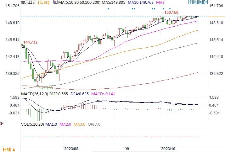 周二(10月24),美元兑日元上涨0.1%,报149.91。由于周二当天所公布的美国采购经理人指数(PMI)和新订单表现良好,使倒挂的公债曲线陡峭化,美元得以巩固住其强势。相对照的是,之前日本10月Jibun银行服务业PMI初值51.10,前值为53.80。制造业PMI初值为48.50,前值为48.50。数据暂时还不足以推动日本央行的货币政策转向,除非看到工资增长和需求驱动的通胀回升或许才能促使日本央行退出负利率。技术图型上,14日动能指标仍然偏多,仍存在上探2022年高点151.94的可能性。但是日线图上的顶背离迹象,须对变盘风险时刻提高警惕。