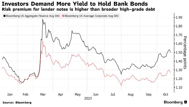 由于美国国债波动性加剧、大量企业财报公布以及地缘政治紧张局势加剧,市场对高评级债券的焦虑情绪再度抬头。这给银行增加了额外的复杂性,这些银行在当前利率的压力下借款,尤其是在美联储可能再次加息后,似乎将继续提高借贷成本。