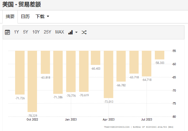 贸易数据也将起到提振数据,近几个月来美国进口额逐步下降,同时出口额稳步上升,8月出口增长1.6%至2560亿美元,接近历史新高。预计2023年全年美国商品和服务贸易逆差将创近四年最低水平。