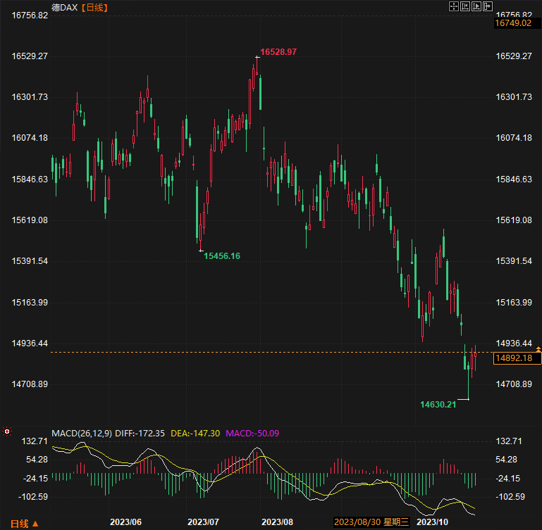 德国DAX30指数收盘上涨16.76点,涨幅0.11%,报14896.70点;