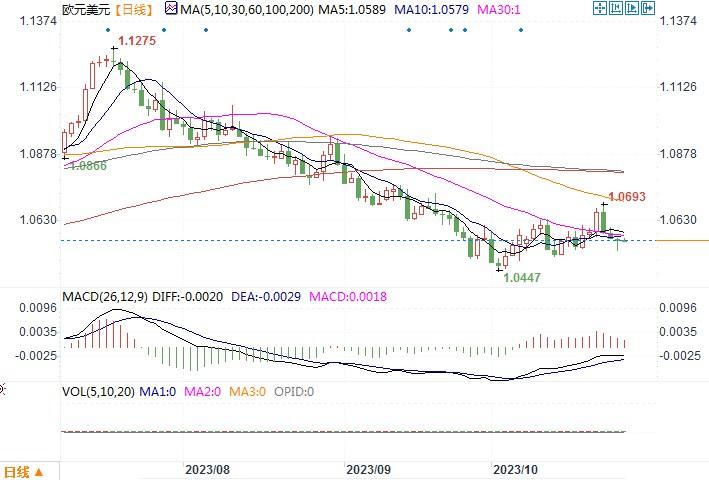 周四(10月26日),欧元兑美元下跌0.03%,报1.0564,盘中最低曾触及1.0520。美国商务部经济分析局公布的初估数据显示,第三季度国内生产总值(GDP)环比增长年率为4.9%,为2021年第四季度以来最快。接受路透调查的经济学家此前预测GDP环比增长年率为4.3%。这强化了一个信息,即美国在经济方面保持韧性,通胀也在某种程度上保持粘性。与此同时,欧洲央行周四一如预期维持利率不变,结束了本轮史无前例的连续10次加息周期,同时坚称任何有关降息的讨论都为时尚早。今日的声明与9月份的声明如出一辙。显然,他们不得不承认通胀下降的事实,这也是他们希望看到的,但最终他们仍试图保持一定程度的鹰派倾向,称通胀仍然过高。而今后如果欧洲的经济表现不佳的话,将会增强投资者对于欧洲央行将彻底结束本轮加息的预期。相反美联储似乎仍保有上调息口的可能性。息差优势料仍会支撑着美元逞强。日线图上,欧元/美元再度低落于布林带通道中轨线之下,前一周产生的升势几乎消失殆尽。下方继续留意1.05水平附近的支撑,若下破的话,欧元有继续探低风险。