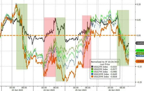 怪事①是:在强劲的三季度GDP数据发布后,各期限美债收益率在周四居然不涨反跌。