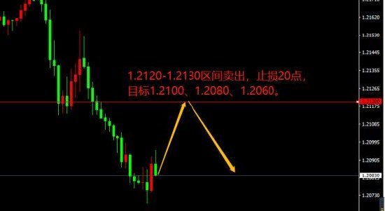 1.2120-1.2130区间卖出,止损20点,目标1.2100、1.2080、1.2060。