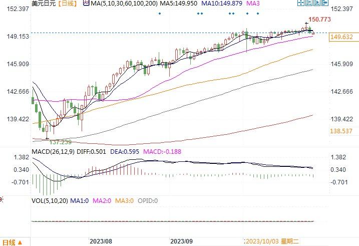 美元兑日元日线图北京时间10月30日13:54 美元兑日元 报 149.64。