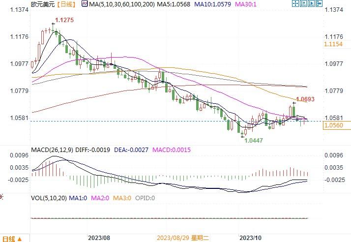 欧元兑美元日线图北京时间10月30日13:23 欧元兑美元 报 1.0561/63。