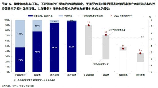 可以看出,衡量够与不够,不能简单只单边看紧缩幅度,更重要的是看通过政策利率推升融资成本对增量融资需求的挤出和存量付息成本的侵蚀程度。
