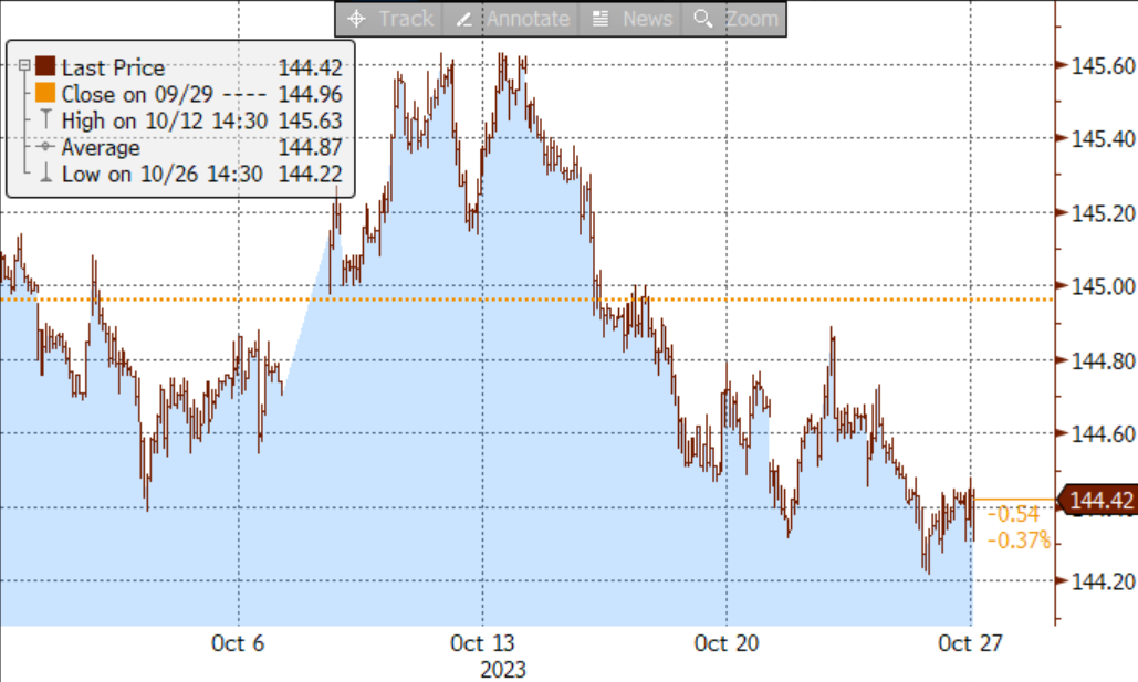 图表5:日本10年国债期货价格10月以来的走势(价格)