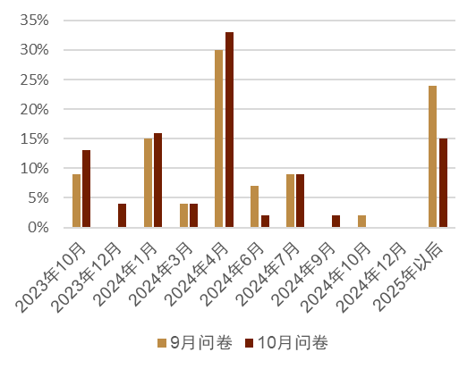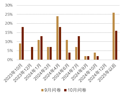 图表2:彭博资讯日本经济学家调查:日本央行今后边际收紧货币政策的时期为?
