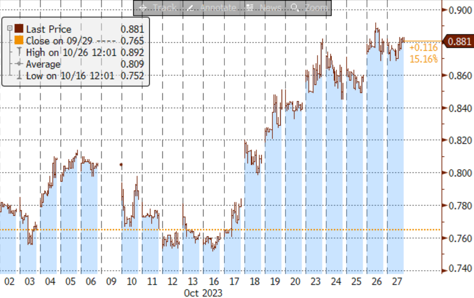 若本次会议日本央行维持现状,则下一次会议结果将于12月19日公布,两次会议之间相距约50天之久。在此期间,如果日债10利率持续上行并触及1%,日本央行在不召开临时议息会议的前提下则无法调整YCC政策,容易将日本央行陷于被动。