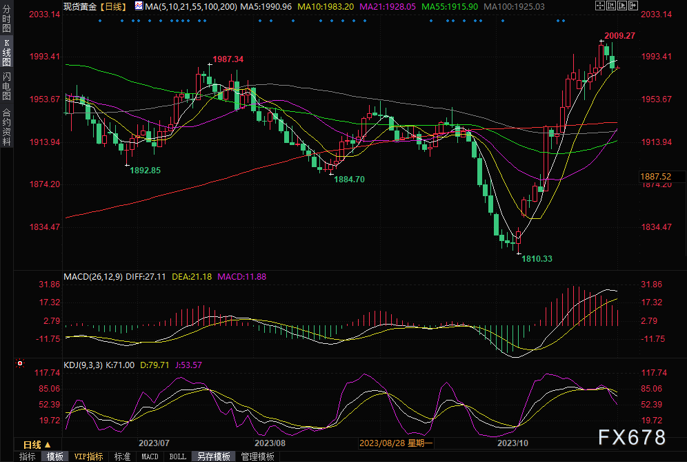 汇通财经APP讯——周二(10月31日),美联储会议即将召开,投资者将注意力转向美联储,金价小幅回落至10日均线附近。受美元指数强劲上涨、原油价格下跌以及美国国债收益率小幅上涨的压力,新的抛售压力出现在美联储发布最新货币政策声明的前一天。美联储的货币政策支持美元走强,债券收益率也保持在5%以内。由于焦点再次回到美联储的货币政策上,周二金价没能守住2000美元/盎司的关口。黄金近期上涨后,短期期货交易者通常会获利了结。