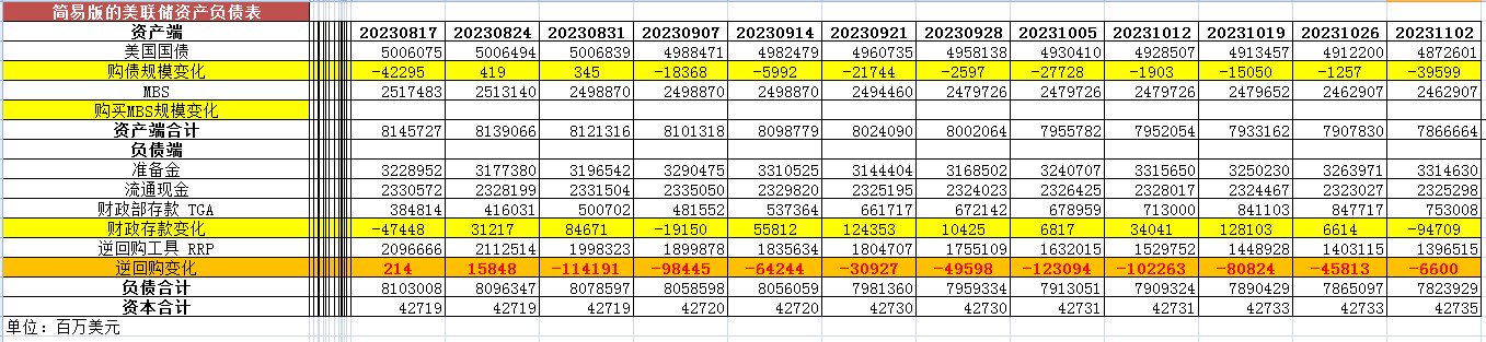 2023年11月2日,美联储照例公布了当周的资产负债表。