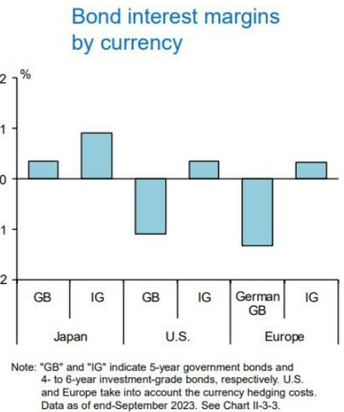 很难说收益率利差会发生什么变化,例如美国10年期国债与日本国债的利差,因为资本回流应该会限制日本国债收益率的上升。然而,短期来看,利差应该会缩小,甚至可能大幅缩小。