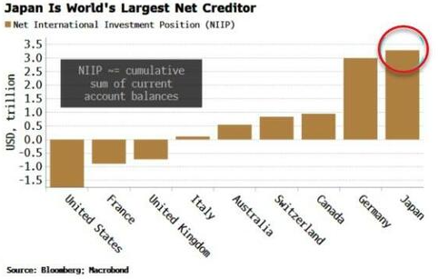 使这一切对世界其他国家如此重要的是日本巨大的净债权人地位。几十年来积累的经常账户盈余创造了世界上最大的NIIP(净国际投资头寸):在国外持有的投资达3.3万亿美元。说到资产,日本打喷嚏就意味着世界其他地区感冒。