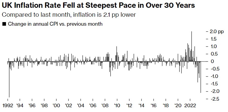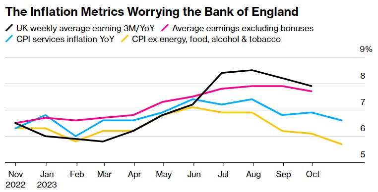 这一降幅甚至比经济学家预期的4.7%还要大,这加强了人们对英国央行即将完成加息的预期。交易员进一步押注英国央行已结束加息。在美国周二公布CPI增速低于预期之后,英国的CPI数据是全球通胀正在缓解的最新迹象。随着经济走弱,加上中东和俄乌的战争令全球经济前景不安,投资者押注明年全球主要经济利率将大幅逆转,尽管决策者坚称,借贷成本将不得不维持在高位,以对抗潜在的价格压力。